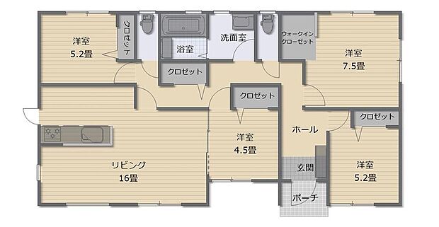 間取り 4LDK 建物階 木造在来軸組工法1階建(910モジュール)