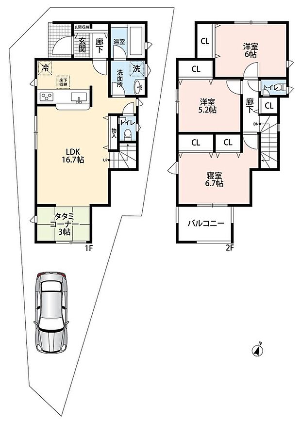 | 間取り | 3LDK | 建物階 | 木造2階建(軸組工法) |