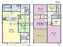 | 間取り | 4LDK 間取り内訳:リビングダイニングキッチン 17.2帖(1階)・和室 4.5畳(1階)・洋室 8帖(2階)・洋室 6帖(2階)・洋室 6帖(2階) |