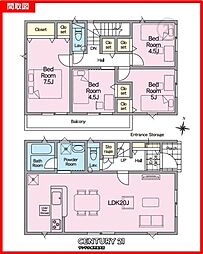 | 間取り | 4LDK 間取り内訳:リビングダイニングキッチン 15.2帖(1階)・和室 5畳(1階)・洋室 7.5帖(2階)・洋室 6帖(2階)・洋室 5.7帖(2階) |