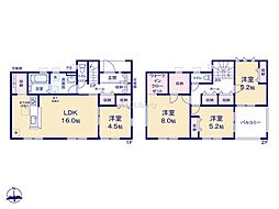 | 間取り | 4LDK 間取り内訳:リビングダイニングキッチン 16.2帖(1階)・和室 4.5畳(1階)・洋室 9.5帖(2階)・洋室 6帖(2階)・洋室 5帖(2階) |