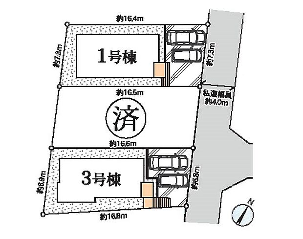 | 土地面積 | 120.27m2~121.02m2<私道負担面積444m2 私道負担割合1/45> | ||