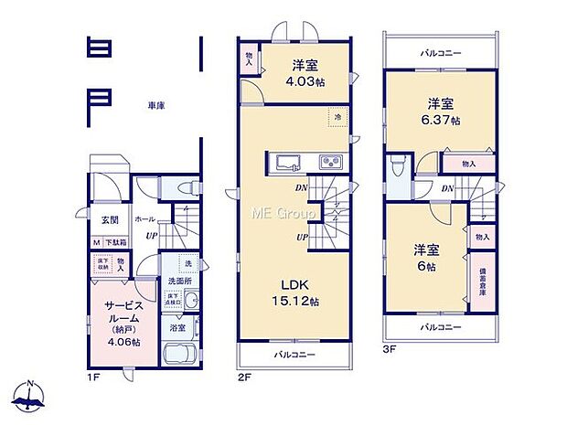 間取り 3LDK+1S  建物階 木造 3階建