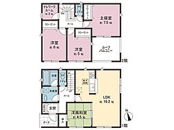| 間取り | 4LDK 間取り内訳:リビングダイニングキッチン 16.2帖(1階)・和室 4.5畳(1階)・洋室 7.5帖(2階)・洋室 6帖(2階)・洋室 5帖(2階)・その他 2帖(2階) |