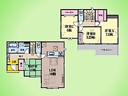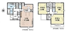 | 間取り | 4LDK 間取り内訳:リビングダイニングキッチン 17帖(1階)・和室 4.5畳(1階)・洋室 5.2帖(2階)x2・洋室 7.5帖(2階) |