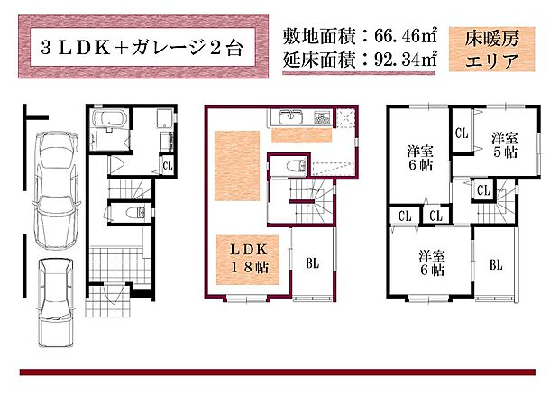 | 間取り | 3LDK+ガレージ2台。4LDK+ガレージ1台 |