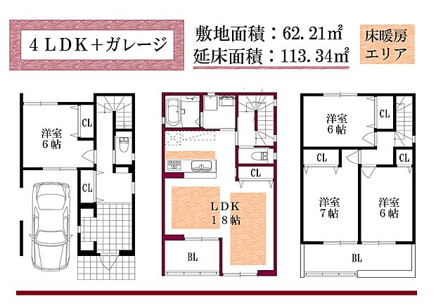 | 間取り | 3LDK+ガレージ2台。4LDK+ガレージ1台 |