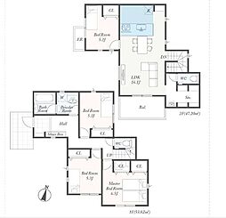 - 「建築条件付き土地」の「建物プラン例」は、土地購入者の設計プランの一例であり、プランの採用可否は任意です。