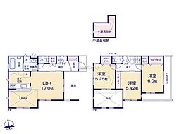 | 間取り | 4LDK 間取り内訳:リビングダイニングキッチン 17帖(1階)・洋室 7帖(2階)・洋室 6.5帖(2階)・洋室 5.2帖(2階)・洋室 5.2帖(2階) |