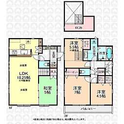 間取り内訳:リビングダイニングキッチン 17.5帖(1階)・洋室 5帖(1階)・洋室 6帖(2階)・洋室 6.8帖(2階)・洋室 7帖(2階)