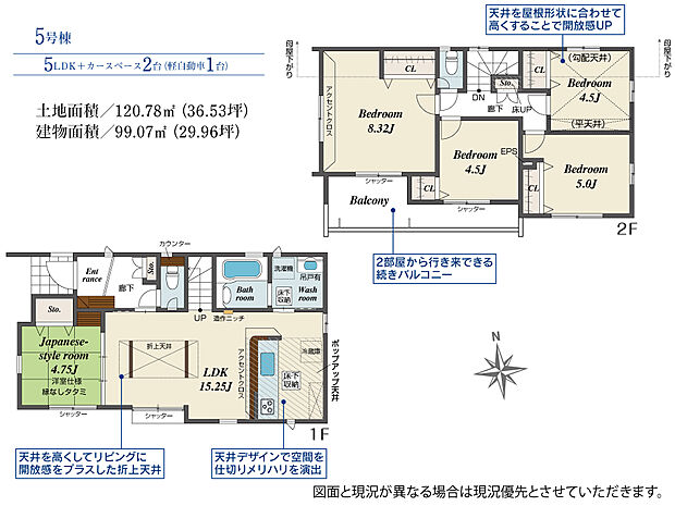 - 「建築条件付き土地」の「建物プラン例」は、土地購入者の設計プランの一例であり、プランの採用可否は任意です。