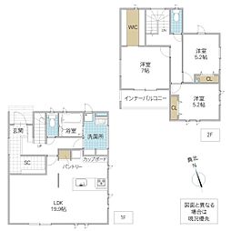 | 間取り | 4LDK 間取り内訳:リビングダイニングキッチン 18帖(1階)・洋室 5.2帖(1階)・洋室 9.5帖(2階)・洋室 4.8帖(2階)・洋室 5.2帖(2階) |
