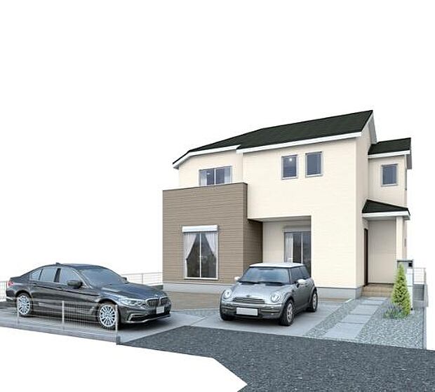 パントリー・シューズインクローク付きの4LDK 2階ホールに手洗いカウンター カースペース並列2台可