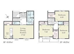 | 間取り | 4LDK 間取り内訳:リビングダイニングキッチン 16帖(1階)・和室 4.5畳(1階)・洋室 8帖(2階)・洋室 6帖(2階)・洋室 6帖(2階) |