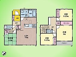 | 間取り | 4LDK 間取り内訳:リビングダイニングキッチン 14帖(1階)・洋室 5.2帖(1階)・洋室 6帖(2階)・洋室 5.2帖(2階)・洋室 7帖(2階) |