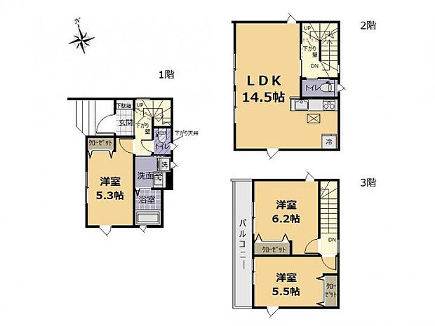 | 間取り | 3LDK | 建物階 | 3階建て 構造:木造 |