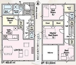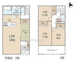 | 間取り | 3SLDK 間取り内訳:リビングダイニングキッチン 16.7帖(1階)・収納 3帖(1階)・洋室 7帖(2階)・洋室 6帖(2階)・洋室 5帖(2階) |