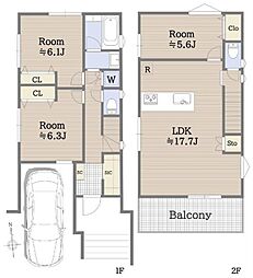 | 間取り | 2(3)LDK~3LDK | 建物階 | 軽量鉄骨造2階建(鉄骨ラーメン構造) |