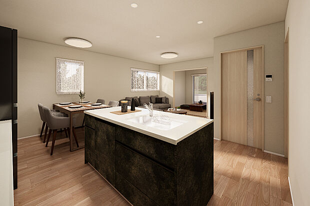 • 【1号地:LDK】II型キッチン採用のお家、毎日の家事ラクをサポートします/完成予想パース
