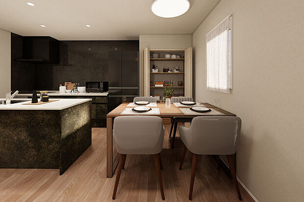 • 【1号地:LDK】横並びダイニングで家事動作の軽減♪/完成予想パース