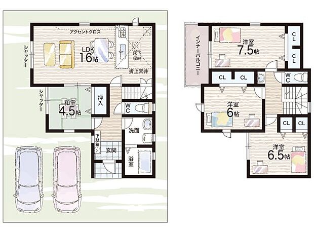 • 「建築条件付き土地」の「建物プラン例」は、土地購入者の設計プランの一例であり、プランの採用可否は任意です。
