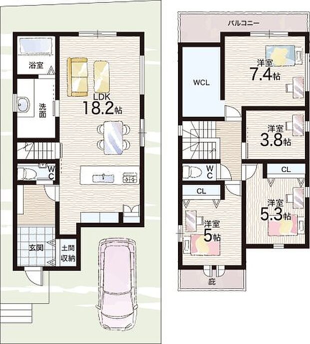 • 「建築条件付き土地」の「建物プラン例」は、土地購入者の設計プランの一例であり、プランの採用可否は任意です。