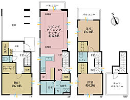 - 「建築条件付き土地」の「建物プラン例」は、土地購入者の設計プランの一例であり、プランの採用可否は任意です。