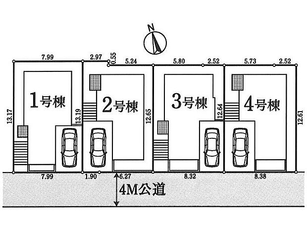 3号棟:南西4m /1号棟:南西4m /4号棟:南西4m