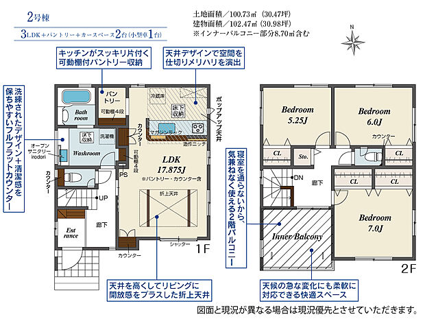 99.37m2(約30.05坪)~102.47m2(約30.99坪) |