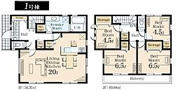 | 間取り | 4LDK 間取り内訳:リビングダイニングキッチン 20帖(1階)・洋室 4.5帖(2階)・洋室 4.5帖(2階)・洋室 6.5帖(2階)・洋室 6.5帖(2階) |