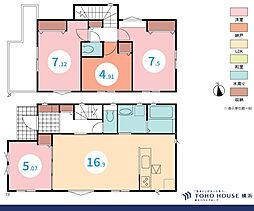 | 間取り | 4LDK 間取り内訳:リビングダイニングキッチン 16帖(1階)・和室 5畳(1階)・洋室 6.1帖(2階)・洋室 6帖(2階)・洋室 8帖(2階) |