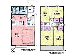 | 間取り | 4LDK 間取り内訳:リビングダイニングキッチン 15.5帖(1階)・和室 4.5畳(1階)・洋室 6帖(2階)・洋室 7.5帖(2階)・洋室 6帖(2階) |