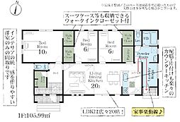 間取り内訳:リビングダイニングキッチン 20帖(1階)・洋室 10帖(1階)・洋室 6帖(1階)x2