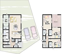 間取り内訳:リビングダイニングキッチン 16帖(1階)・洋室 7.5帖(2階)・洋室 7.2帖(2階)・洋室 6.2帖(2階)・洋室 4.5帖(1階)
