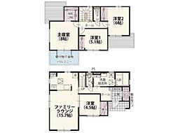 | 間取り | 4LDK 間取り内訳:リビングダイニングキッチン 18.2帖(1階)・和室 4.5畳(1階)・洋室 7.5帖(2階)・洋室 5.2帖(2階)・洋室 5.2帖(2階) |
