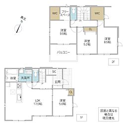 | 間取り | 3LDK 間取り内訳:リビングダイニングキッチン 20帖(1階)・洋室 10帖(2階)・洋室 6帖(2階)・洋室 5.2帖(2階) |