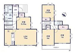 間取り内訳:洋室 5.1帖(1階)・洋室 6帖(1階)・洋室 4帖(2階)・リビングダイニングキッチン 16.6帖(2階)