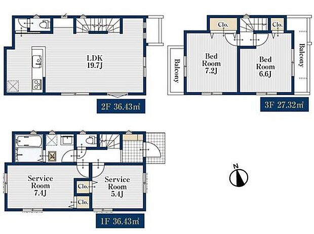 | 間取り | 2LDK+2S(納戸) | 建物階 | 地上3階 木造 |