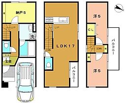 | 間取り | 3LDK 間取り内訳:リビングダイニングキッチン 18帖(1階)・洋室 10.2帖(2階)・洋室 5.2帖(2階)・洋室 5.2帖(2階) |