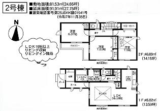 | 間取り | 3LDK 間取り内訳:リビングダイニングキッチン 16.1帖(1階)・洋室 7.5帖(2階)・洋室 7帖(2階)・洋室 6.3帖(2階) |