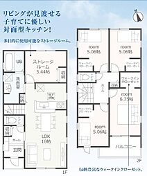 | 間取り | 4SLDK 間取り内訳:リビングダイニングキッチン 16帖(1階)・収納 5.5帖(1階)・洋室 6帖(2階)・洋室 5.6帖(2階)・洋室 5帖(2階)・洋室 4.4帖(2階) |
