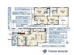 - 「建築条件付き土地」の「建物プラン例」は、土地購入者の設計プランの一例であり、プランの採用可否は任意です。