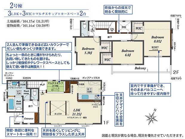 • 【【2号棟】リビング】LDK+畳マルチスキップで広々21.25帖!