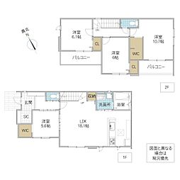 | 間取り | 4LDK 間取り内訳:リビングダイニングキッチン 18.5帖(1階)・洋室 4.8帖(1階)・洋室 12帖(2階)・洋室 6帖(2階)・洋室 4.8帖(2階) |
