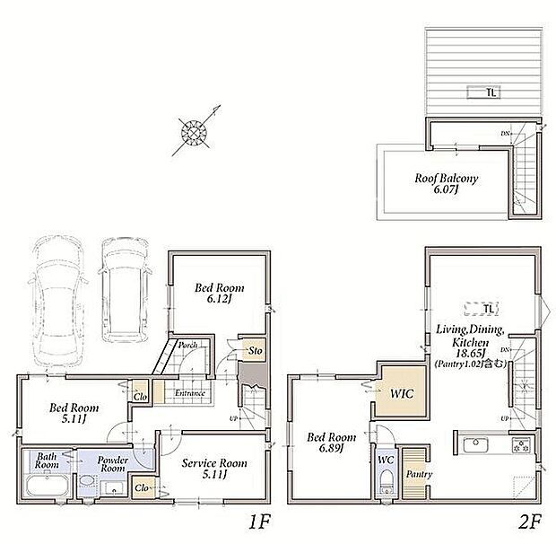 ウォークインクローゼット付きで収納スペース充実。2階建ての新築住宅です。