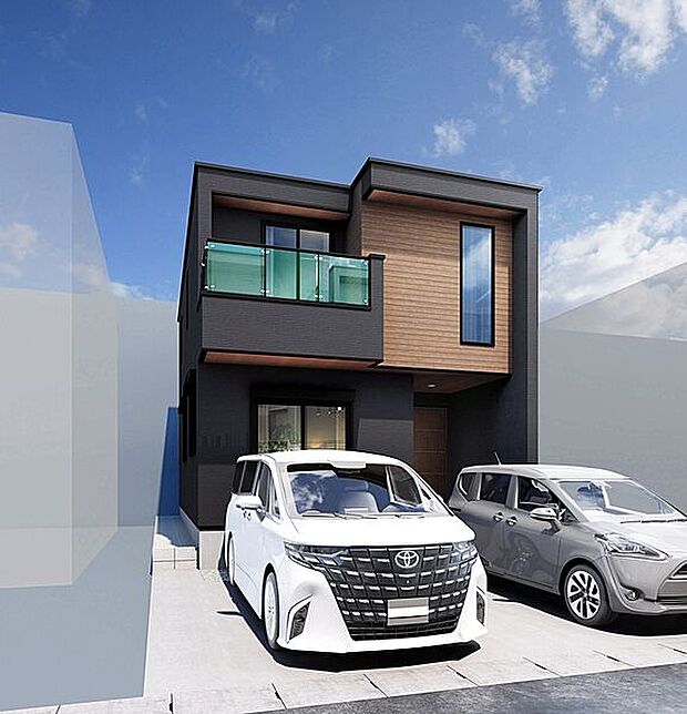 並列2台駐車可能なカースペース付き。家族の集まるLDKは18畳の新邸です。