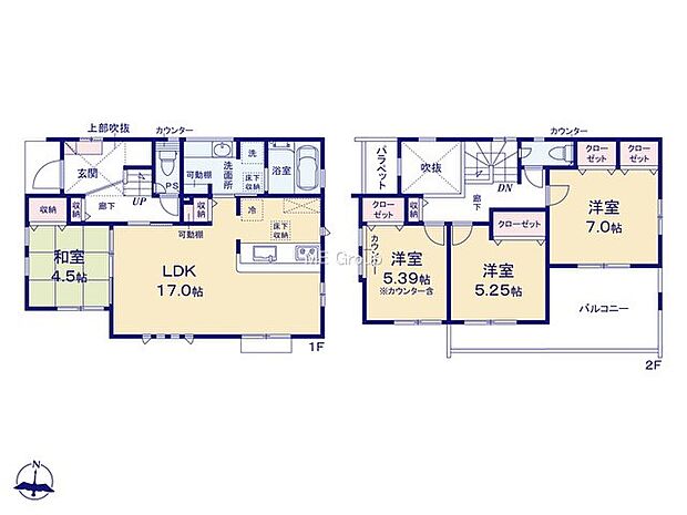 • 「建築条件付き土地」の「建物プラン例」は、土地購入者の設計プランの一例であり、プランの採用可否は任意です。