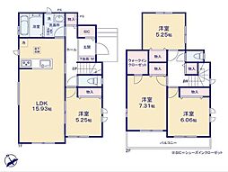 | 間取り | 4LDK 間取り内訳:リビングダイニングキッチン 22帖(1階)・洋室 7.3帖(2階)・洋室 5.5帖(2階)・洋室 5.2帖(2階)・洋室 4.3帖(2階) |