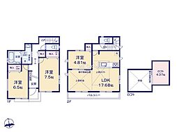 | 間取り | 4LDK(建物面積に車庫面積7.45?含む) 間取り内訳:リビングダイニングキッチン 18帖・洋室 8帖・洋室 4.9帖・洋室 5.8帖・洋室 5.3帖 |