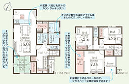 | 間取り | 4LDK 間取り内訳:リビングダイニングキッチン 15帖(1階)・和室 4.5畳(1階)・洋室 7.5帖(2階)・洋室 6帖(2階)x2 |